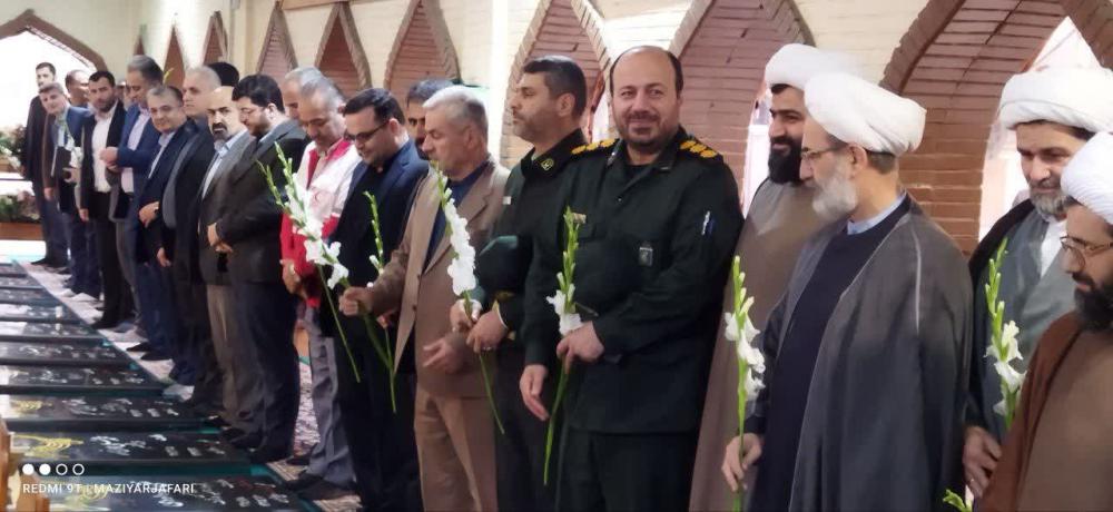 در این مراسم مسئولین با اهداء گل و ذکر صلوات، به روح پاک ومطهر شهیدان گرانقدر درود و سلام فرستادند.