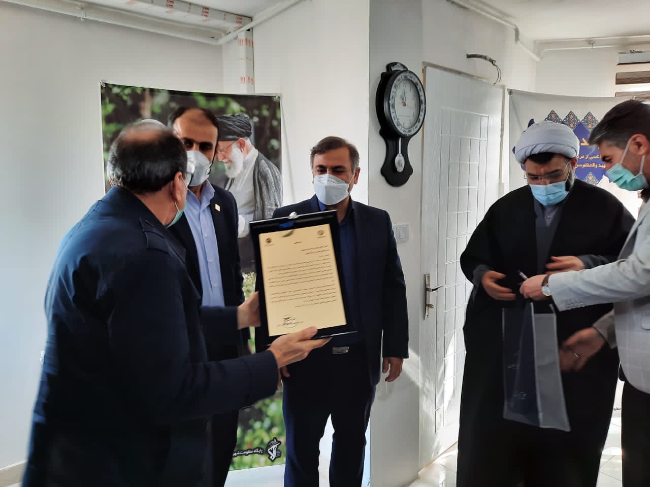 در این آئین که با حضور حجت الاسلام و المسلمین ایران عقیده دادستان فومن ، علی حسین نژاد مدیرکل تامین اجتماعی گیلان و رئیس اتاق اصناف شهرستان برگزار گردید ، لوح تندیس و هدیه مدیرعامل شرکت نئوپان به نماینده این مجموعه اهداء گردید .