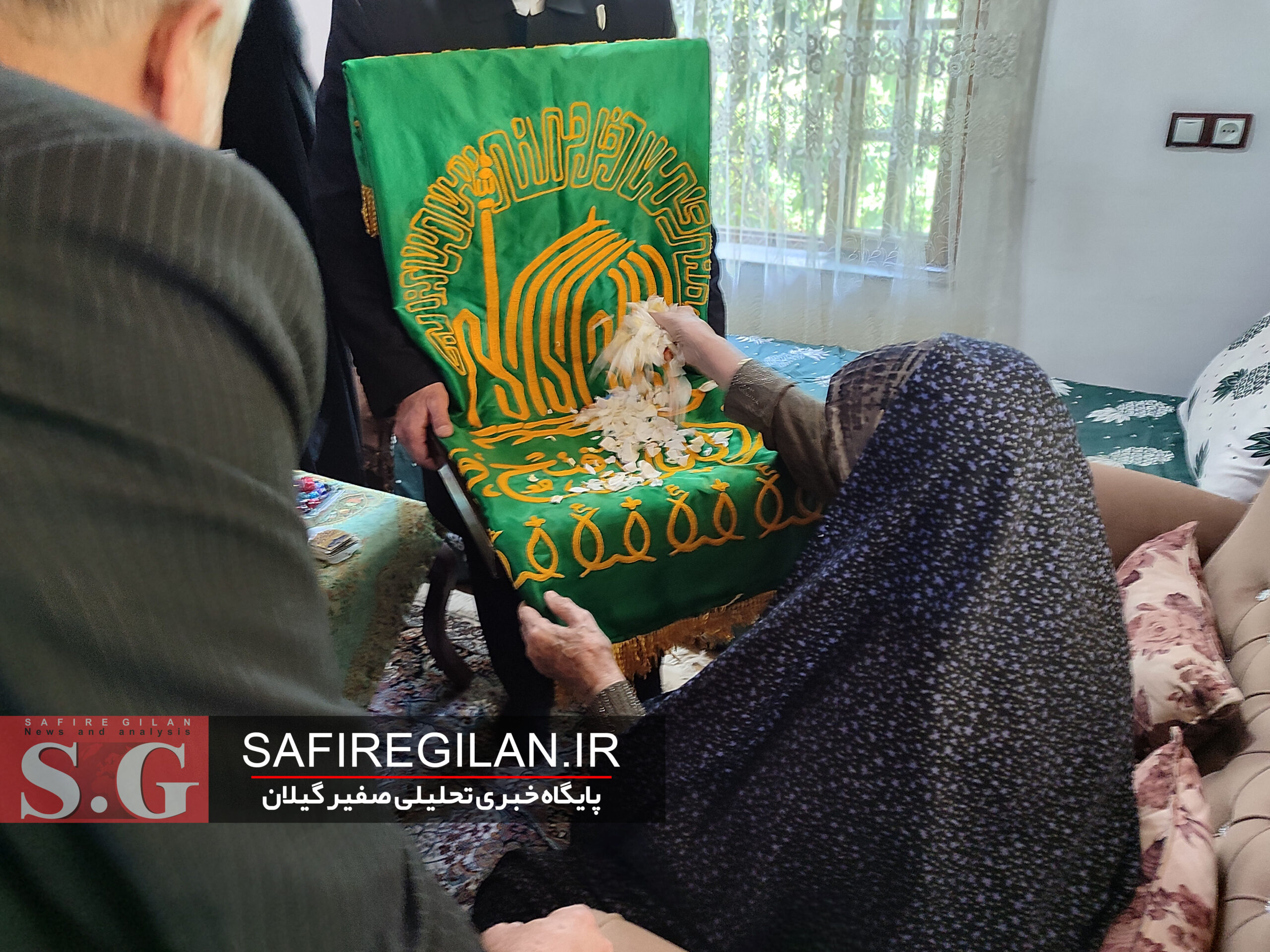 به گزارش خبرنگار صفیر گیلان از فومن؛خادمین امام رضا با عنوان کاروان »زیر سایه خورشید» با حضور در منزل مادر شهیدان محمد ابراهیم، هیب الله و بیت الله امام پناهی ضمن بردن پرچم متبرک امام رضا(ع) نزد خانواده این شهیدان سرافراز با مادر شهیدان امام پناهی بانوی فدار (حیران )در روستای ملسکام فومن دیدار و و آرزوی سلامت آنان از درگاه حضرت منان هدایای متبرک امام رضا (ع) را به آنان هدیه دادند.