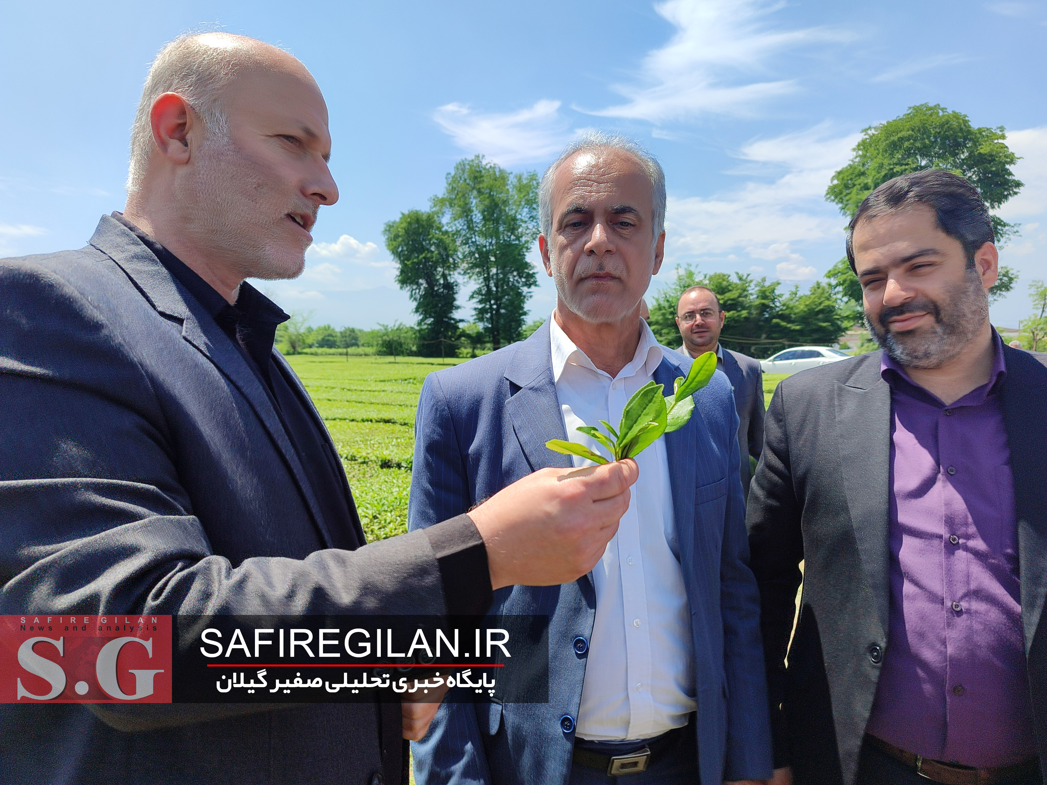 اختصاصی/صفیر گیلان؛ حبیب جهانساز رئیس سازمان چای کشور باهمراهی اسداله عباسی استاندار گیلان و فرامرز مرجانی فرماندار شهرستان فومن و مدیران کل برخی در گیلان از باغات چای و همچنین فراورده های چای یاسینی در فومن بازدید کرد.