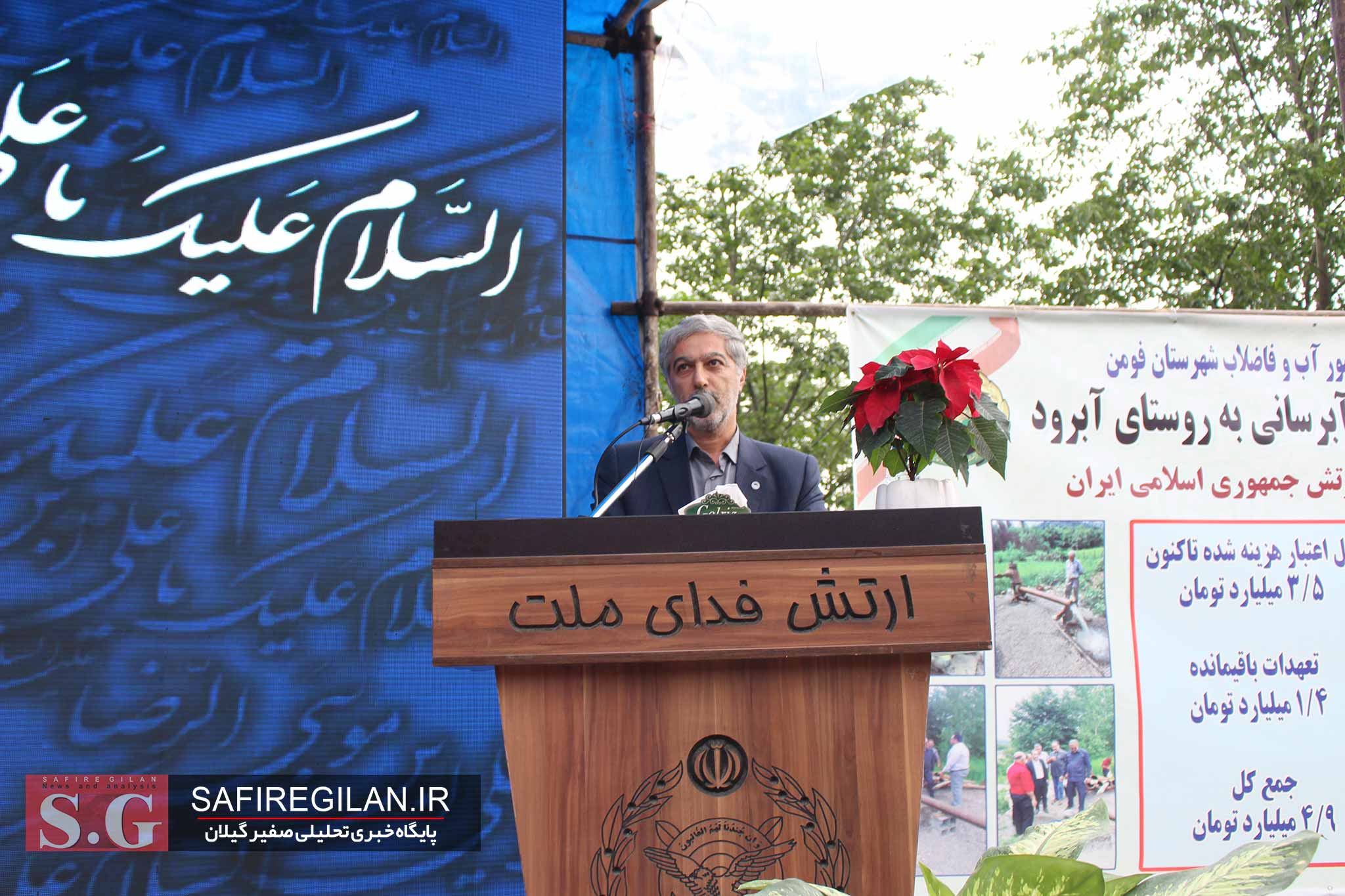 وی به پروژه آبرود که به دستور سردار سلامی با منعقد کردن قرار داد ۱۰ هزار روستای آغاز شد گفت:این پروژه با پشتیبانی ارتش و با همکاری مهندس مهجور مدیر آب و فاضلاب شهرستان فومن با پیگیری ها اجرایی شد و امروز ۴۵۰ خانوار برخوردار از آب شرب سالم شدند.