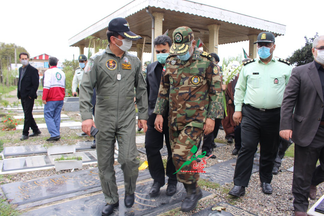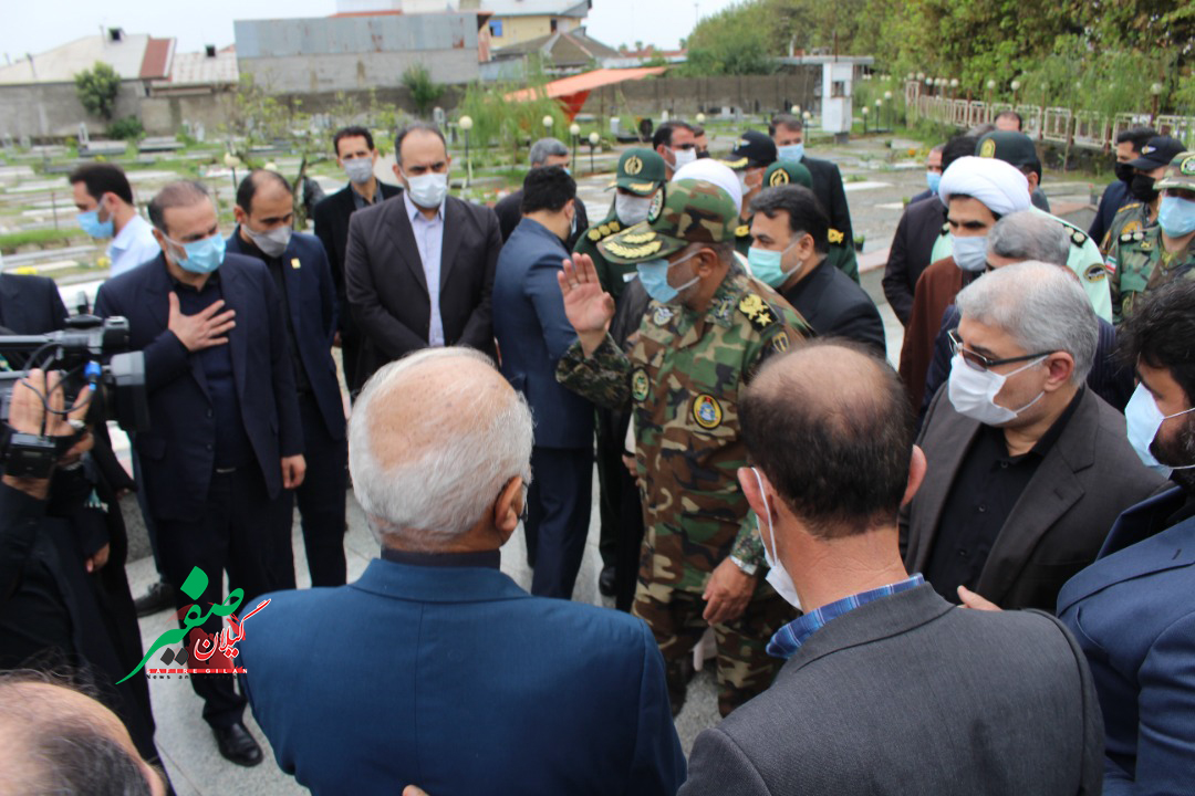 صفیر گیلان؛جانشین فرمانده نیروی زمینی ارتش جمهوری اسلامی ایران به منظور بهرهبرداری از طرحهای سلامت محور شهرستان فومن، در گلزار شهدای این شهر حضور یافت.