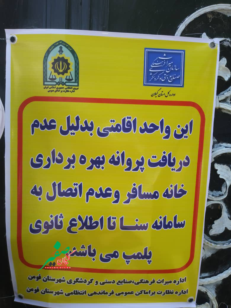 مسئول دفاتر اطلاع رسانی و خانه مسافرهای غرب گیلان با اعلام این خبر افزود: «با توجه به تذکر مکرر و پلمپ واحدهای اقامتی غیرمجاز  شهرستان فومن در هفته گذشته متاسفانه، افرادی مجددا مسافر پذیرش می‌کردند که در چند روز گذشته این واحدها توسط میراث‌فرهنگی و نیروی انتظامی شناسایی و پلمپ شدند.»