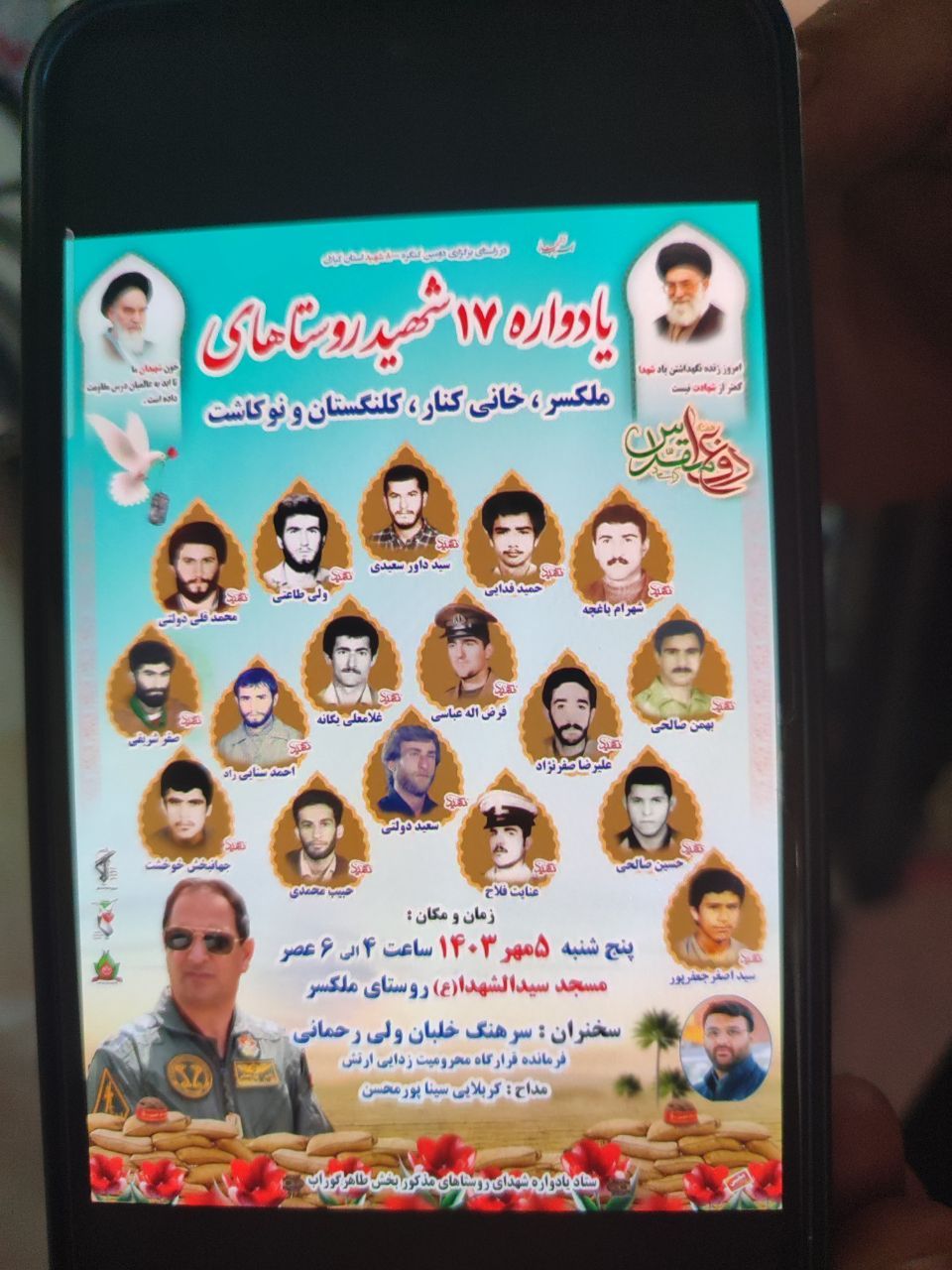 اختصاصی/صفیر گیلان؛یادواره ۱۷شهید روستاهای ملکسر،خانی کنار کلنگستان و نوکاشت بخش طاهرگوراب شهرستان صومعه سرا امروز در مسجد سید الشهدا (ع) با سخنرانی سرهنگ خلبان ولی رحمانی فرمانده قرارگاه محرومیت زدایی ارتش و مداحی کربلایی سینا پور محسن و خانواده شهدا و دهیاری شورا ،سپاه،نیروی انتظامی ،فرماندهان سپاه