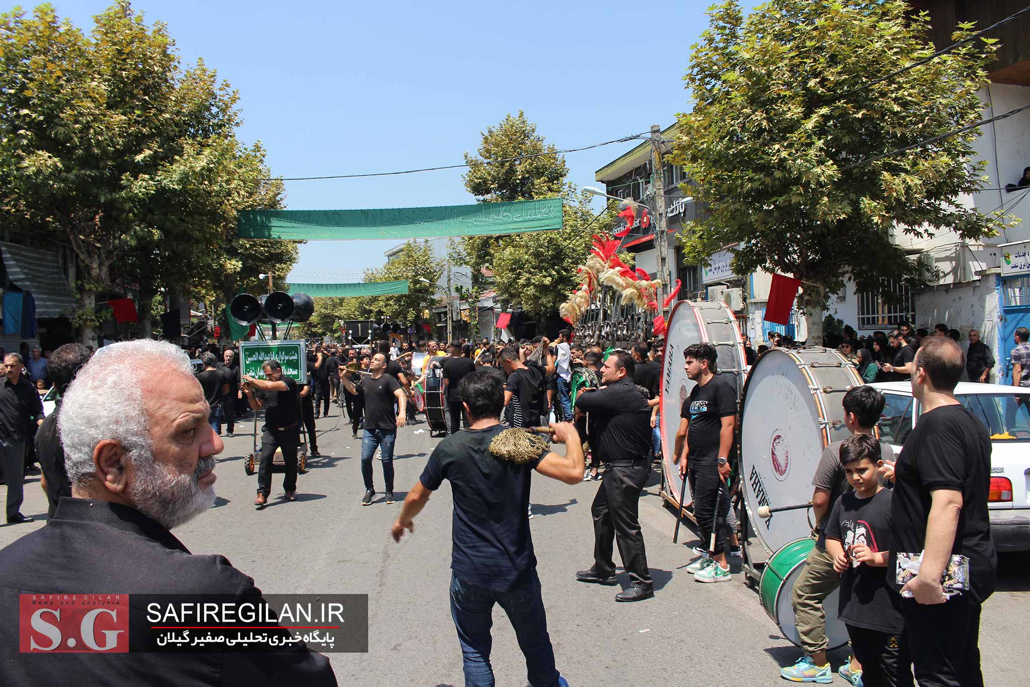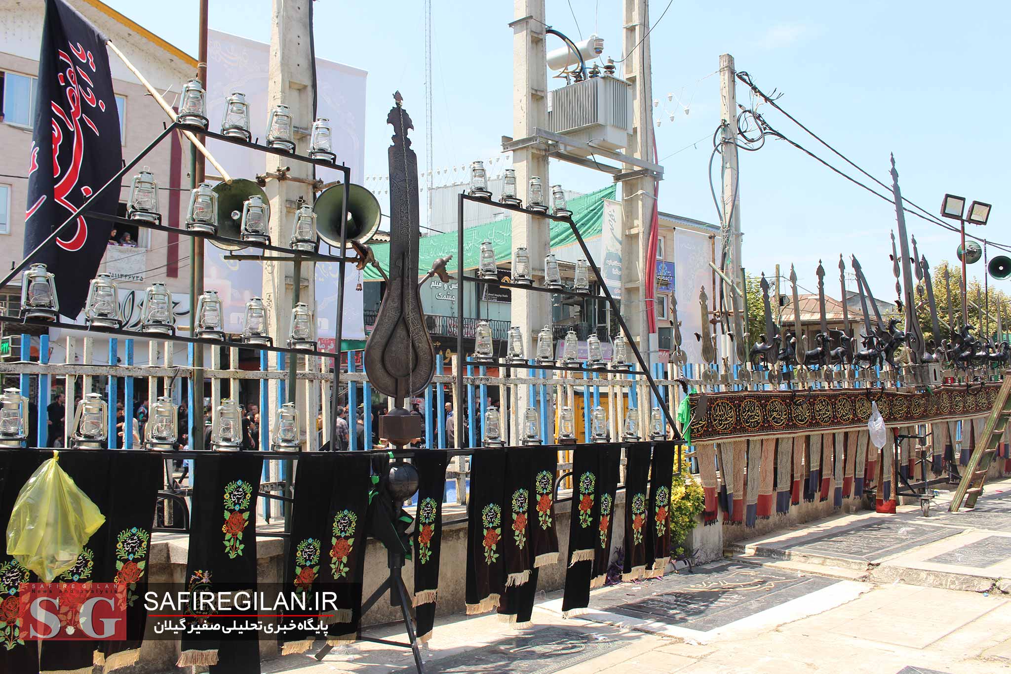 صفیر گیلان،آیینهای عزاداری تاسوعا و عاشورای حسینی در مرکز شهرها و در مصلی و مساجد و تکیه ها و حسینیه ها برگزارو دسته های عزاداری مساجد مختلف شهرستان های گیلان در این محل حضور یافته و عرض ارادت خود را به شهدای کربلا نشان دادند