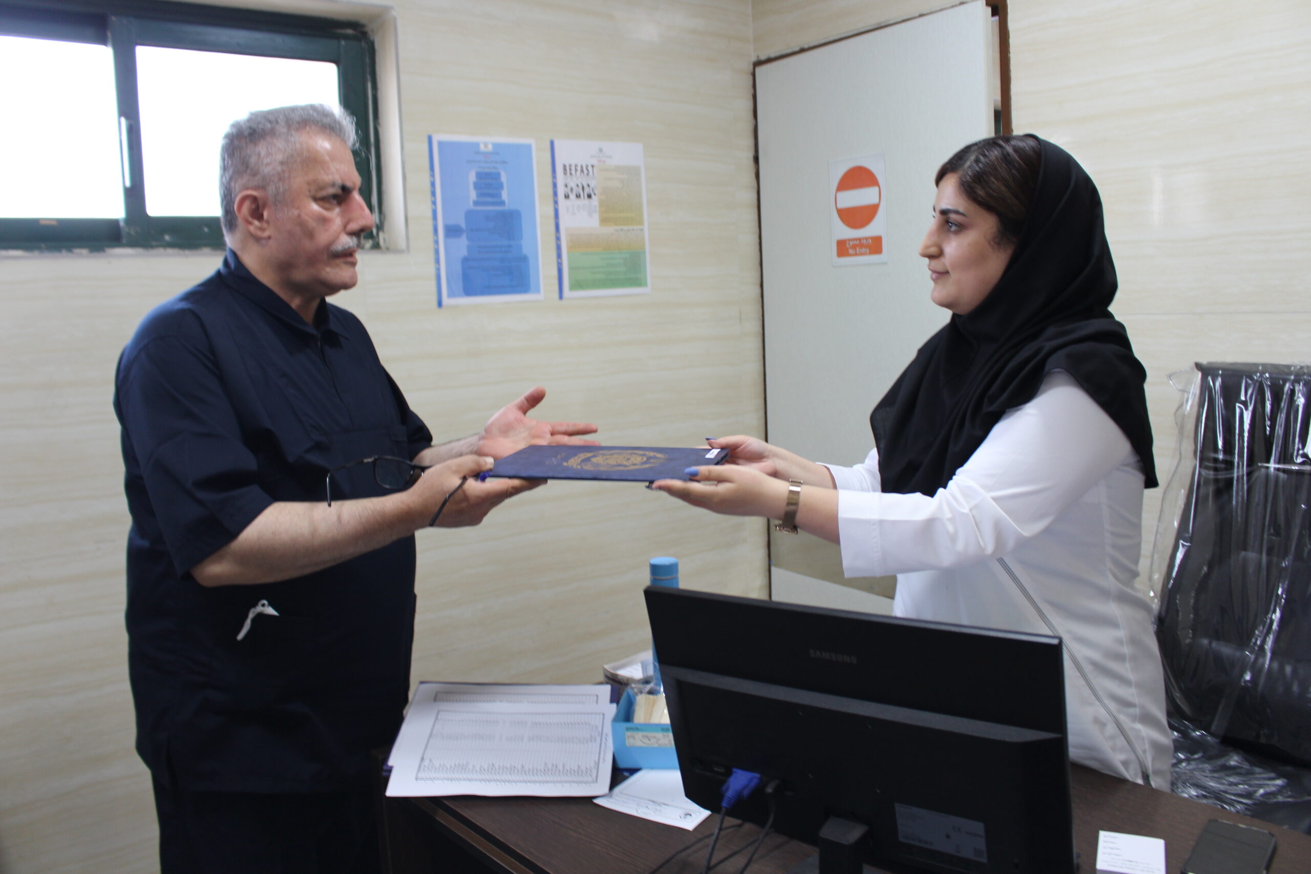 همچنین امروز تعداد ۳۲ لوح تقدیر ه همراه هدیه از طرف نماینده سرهنگ دکتر رحمانی تقدیم دکتر کوهستانی رئیس شبکه بهداشت و درمان شهرستان فومن شد که در این شبکه به نمایندگی از پزشکان از دو پزشک خانم دکتر میترا عسگریان پزشک عمومی و خانم دکتر بهنود حسینی پزشک خانواده تجلیل شد.