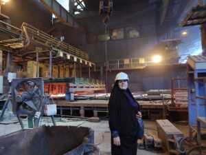 هر چه جلوتر میرفتیم صدایی شبیه صدای ضربات سنگین در کنار صدای آژیر گوشخراش بلند و بلندتر میشد. از کنار دستگاهها و ماشینآلات و کورههای غولپیکر گذشتیم و در لحظهای بعد، سر و صورت و لباسهایمان در برادههای آهن و گرد و خاک غرق شد. به راهنمایی مسئول از پلکانهای طولانی بالا رفتیم که البته در گرمای شدید ورق فولادی و آتش و شمش گداخته برخی همکاران انصراف دادند ولی ذوق دیدن این همه ابهت برای تولید و رونق اقتصاد و اشتغال میارید از آن بالا این غرور جمعی را شاهد باشیم.