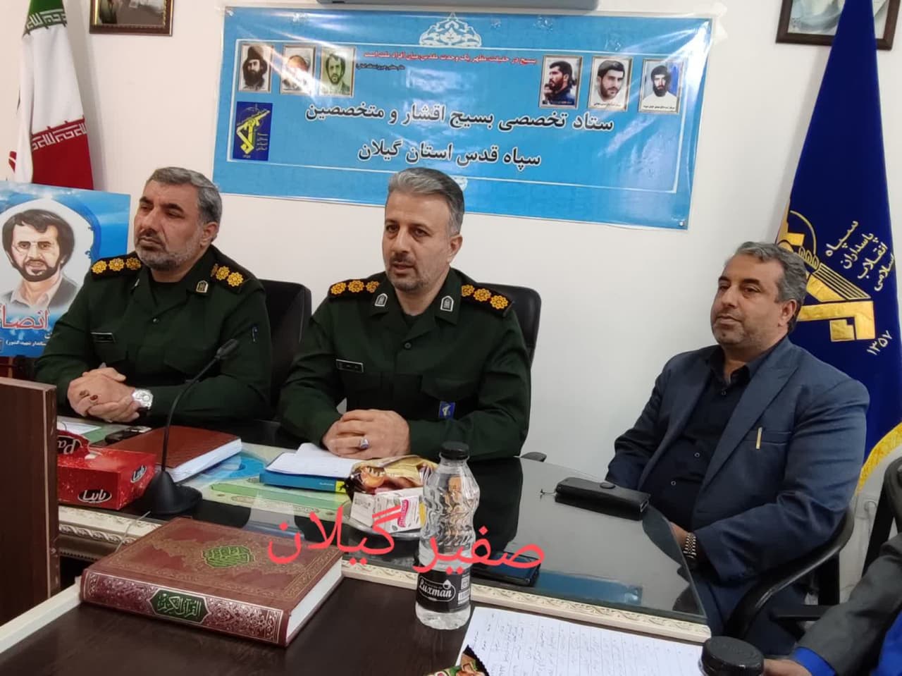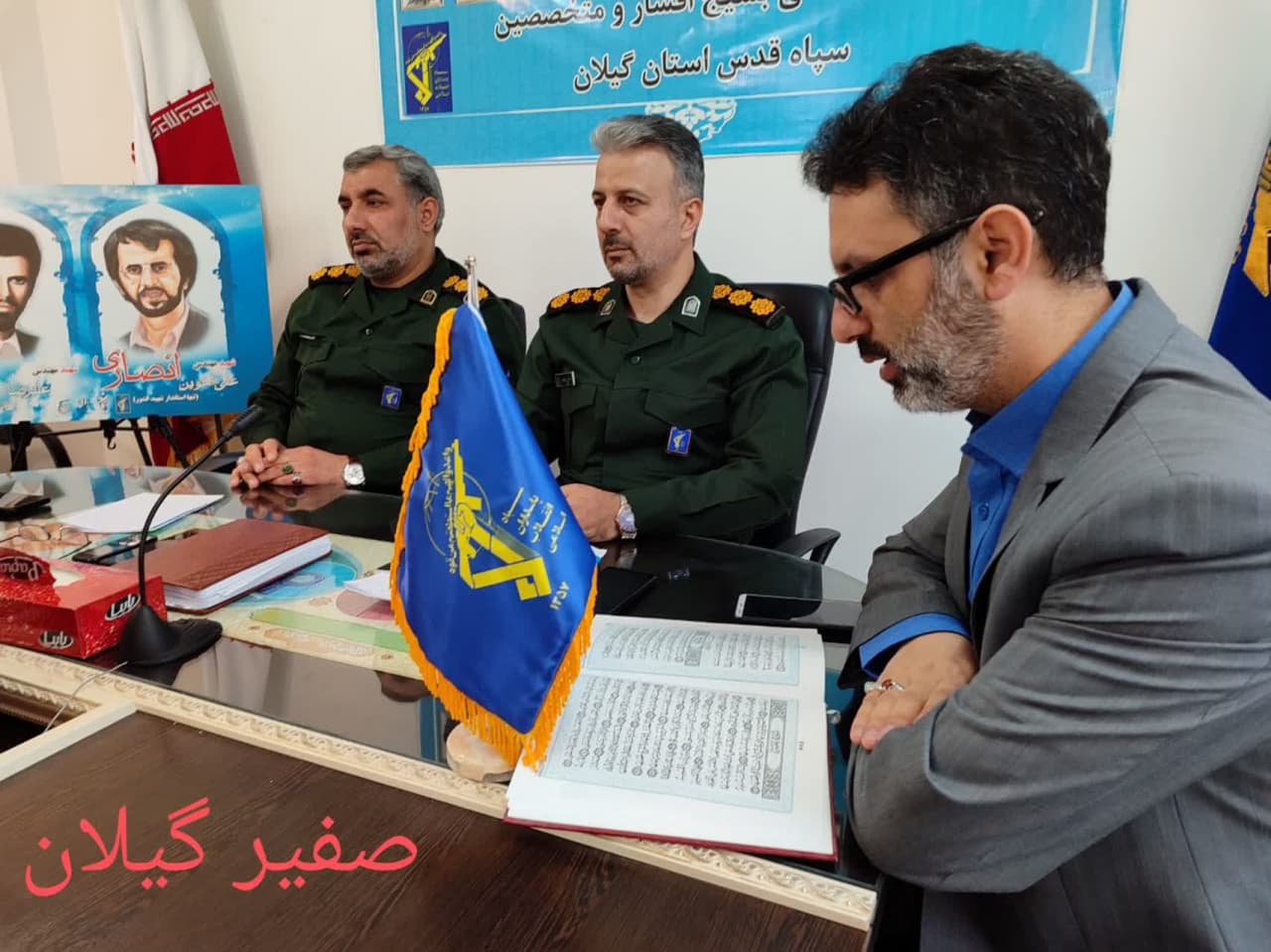 جانشین فرمانده سپاه قدس گیلان شهید ان انصاری و نورانی را الگویی برای مدیران در مدیریت معرفی نمود و گفت: شهید انصاری کشور امریکا را بعد از سالها زندگی برای خدمت به کشور رها نمود و نیاز است امروز ما علاوه بر برگزاری یادمان این شهید حداقل ساخت مجموعه تلوزیونی و چاپ کتاب و پر رنگ کردن سردیس این شهیدان را در دستور کار فرهنگی استان داشته باشیم.