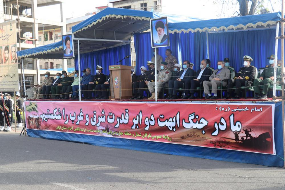 در پایان این مراسم نیروها و ادوات نیروی دریایی ارتش جمهوری اسلامی ایران، بسیج و سپاه پاسداران انقلاب اسلامی و نیروی انتظامی جمهوری اسلامی مستقر در استان گیلان از مقابل جایگاه رژه رفتند.