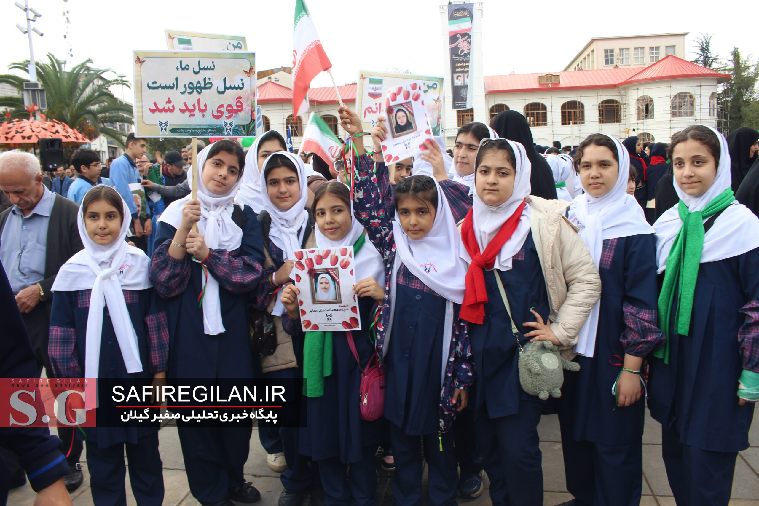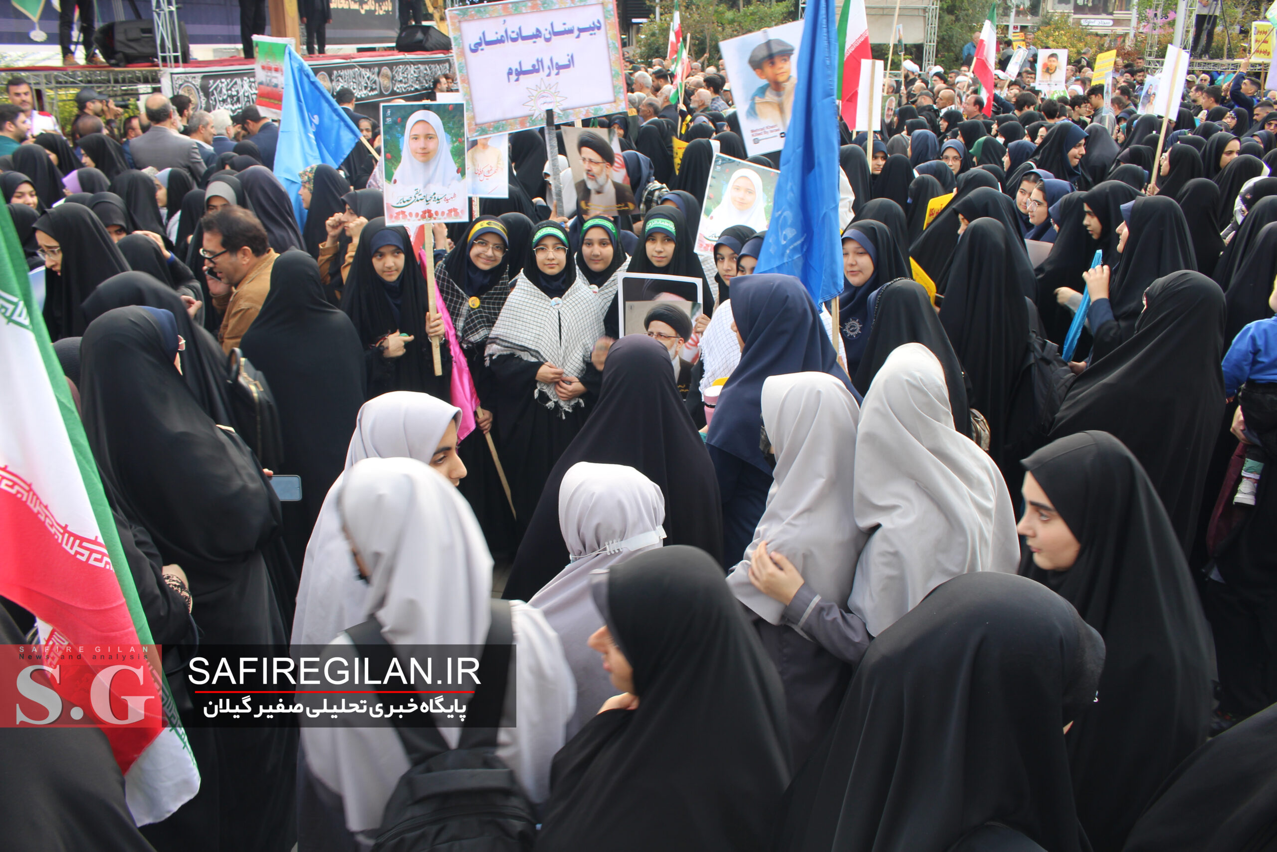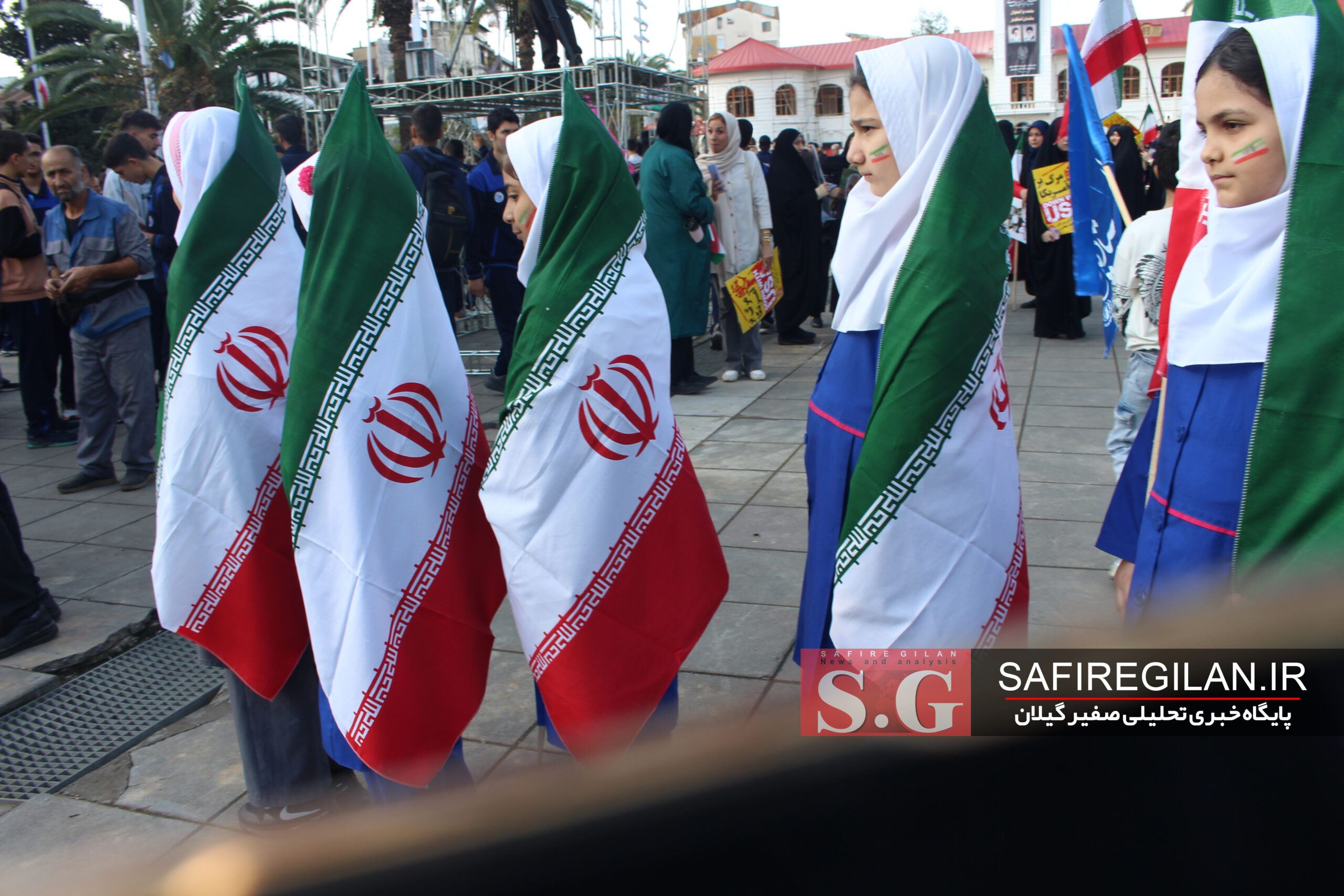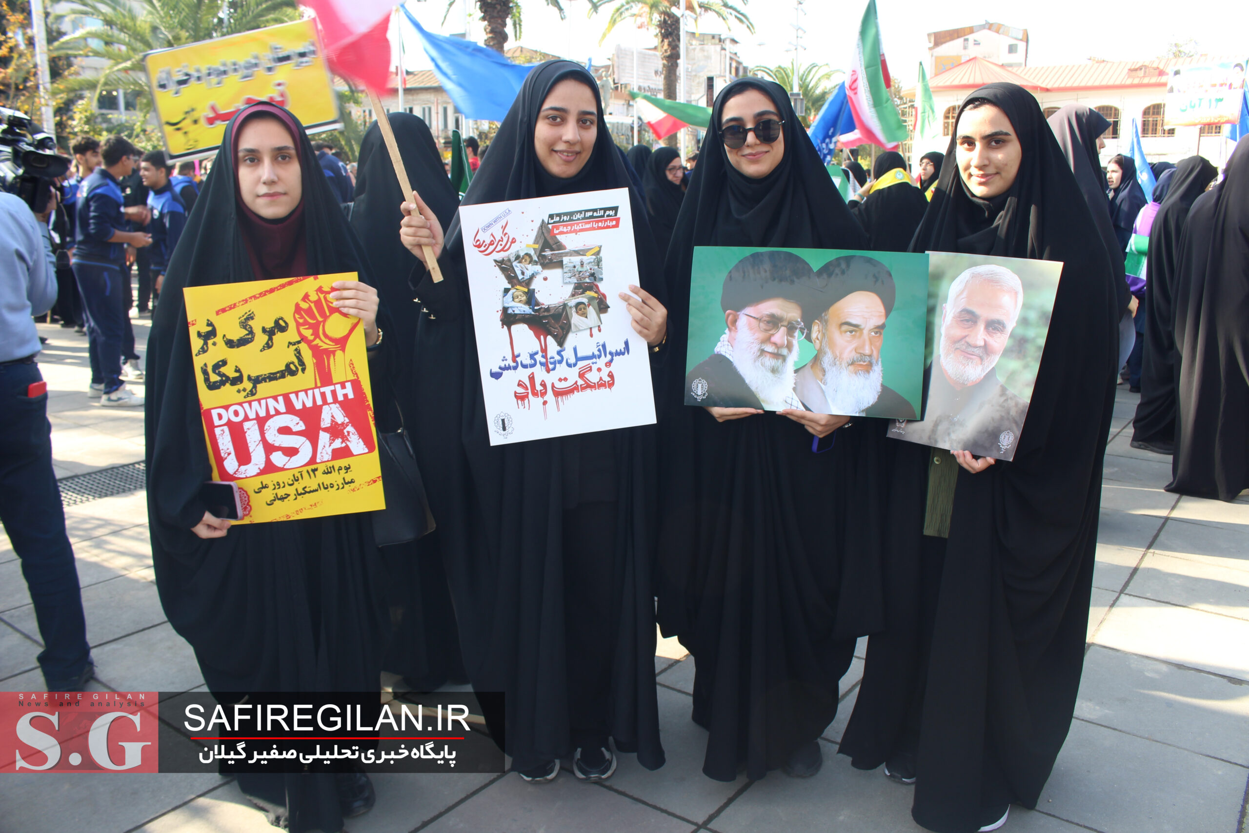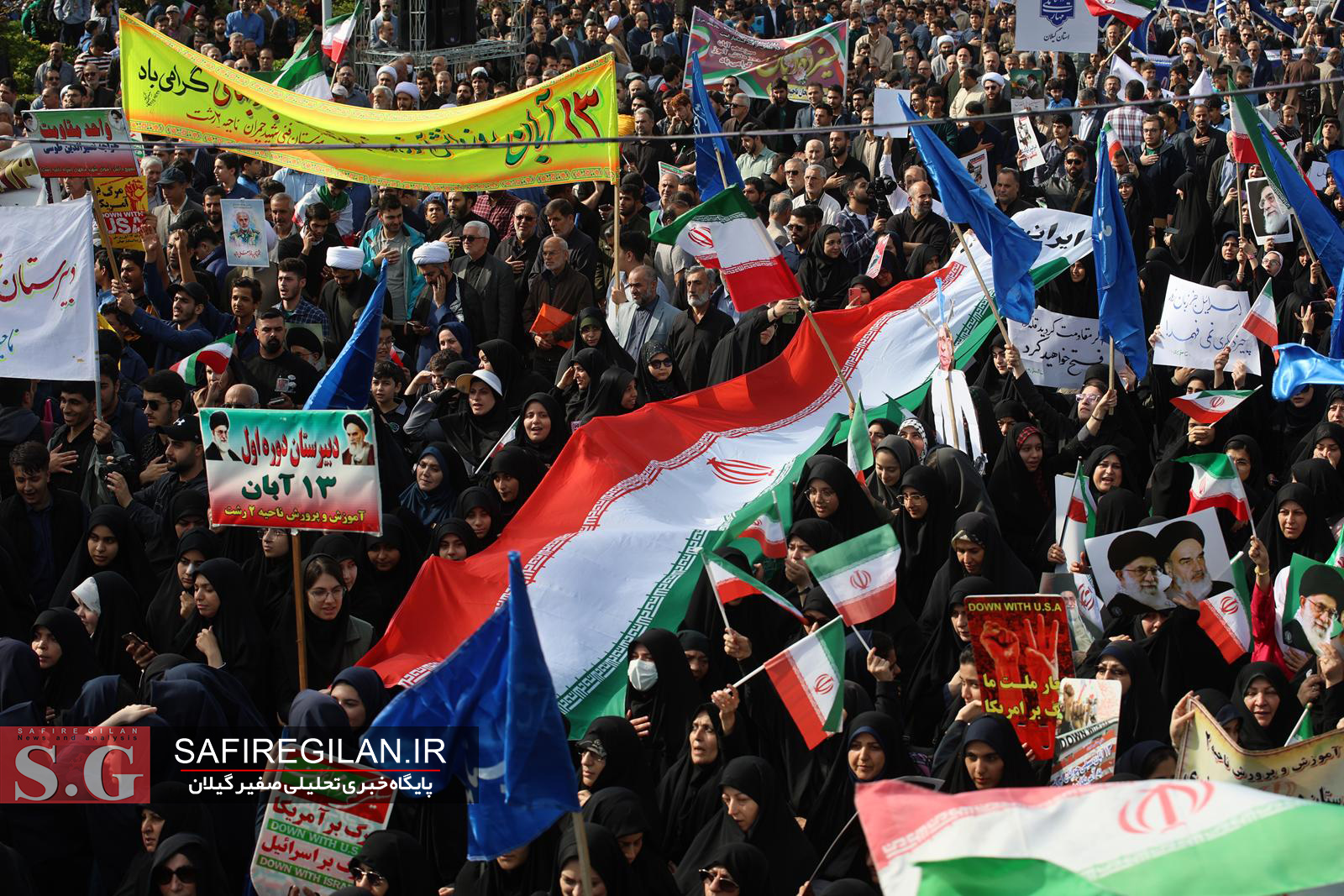 به گزارش خبرنگار صفیر گیلان ؛۱۳ آبان امسال جای جای گیلان سرسبز مان بار دیگر با حضور پرشور مردم، دانشآموزان، دانشجویان و اقشار مختلف جامع زنده و پویا از جنس سبزی گیلان بر تن کرده بود که در هوایی آمیخته با هیجان و ایمان، حماسهای تازه از ایستادگی در برابر استکبار جهانی رقم زدند.