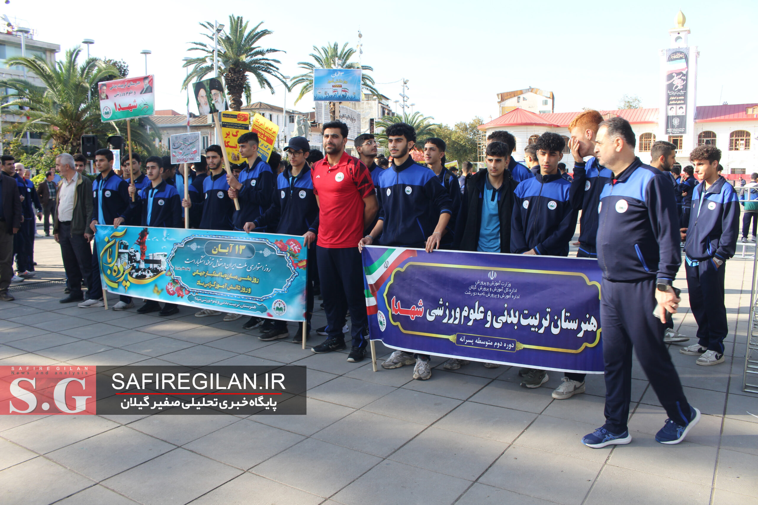 راهپیمایی ۱۳ آبان در مردم گیلان به خصوص شهر رشت تنها محدود به دانش آموزان نبود بلکه همچون سالهای گذشته از تمامی اقشار مردم در آن حضوری پرشور داشتند که از جمله عوامل این استقبال باشکوه را میتوان در شرایط خاص منطقه و لزوم همبستگی بعد از جنگ ۱۲ روزه اخیر و شهادت ۱۶ تن از همونان عزیز در استانه اشرفیه و شهادت تعداد دانش آموزان در این جنگ دانست که مظلومانه به شهادت رسیدند و امروز تصاویر این دانش آموزان گیلانی زینت بخش این اجتماع پر شور و مردمی بود.