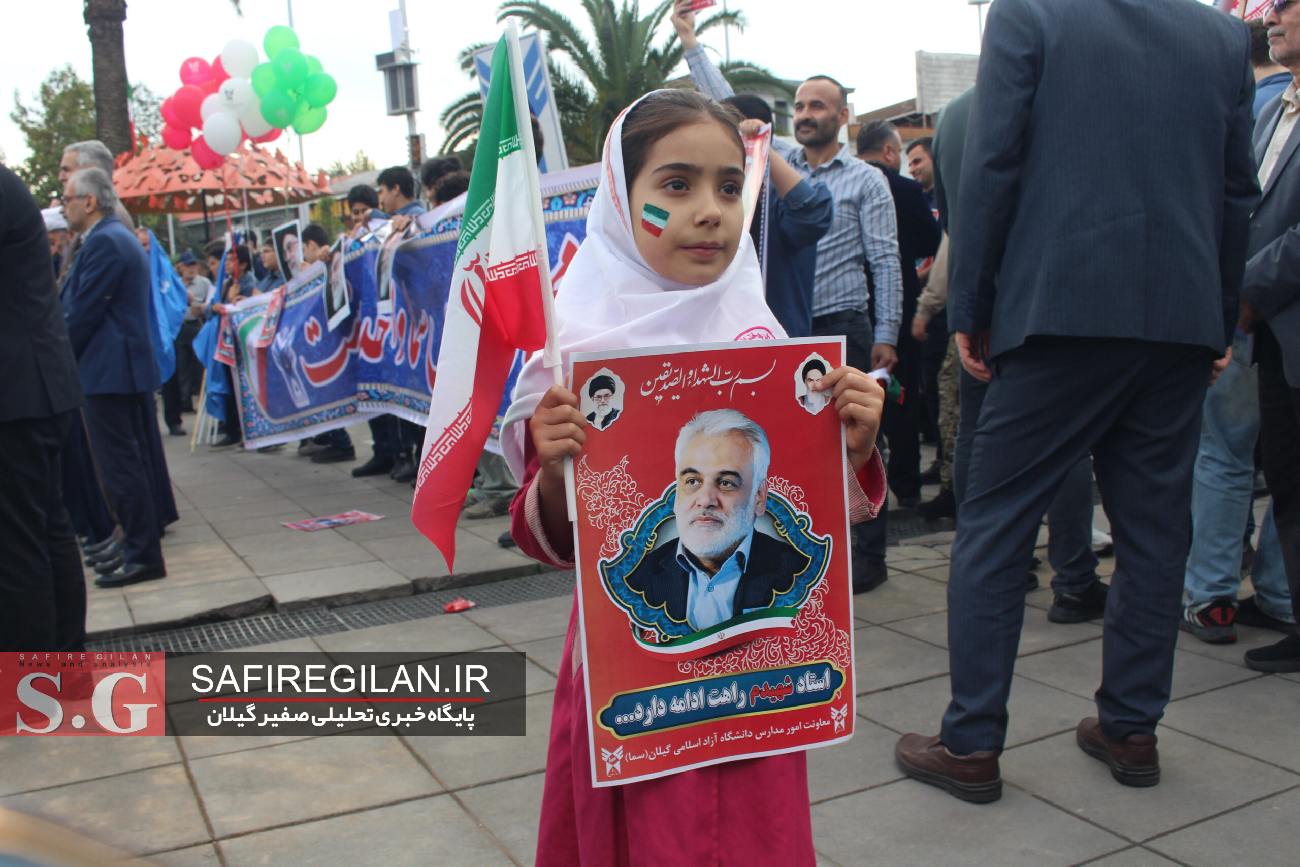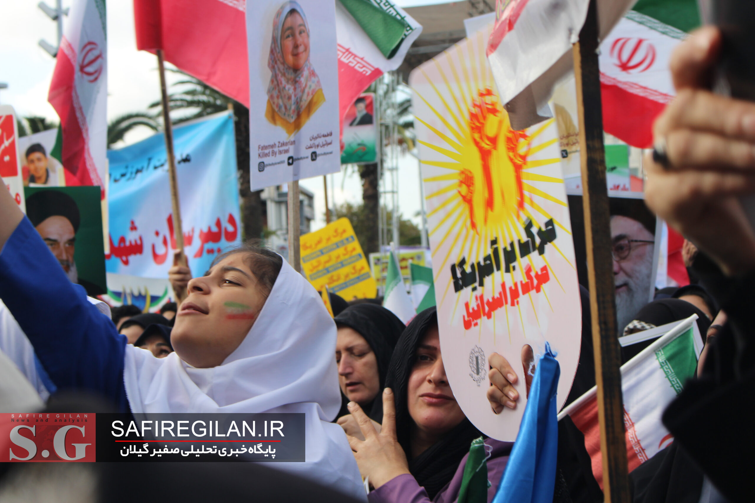 مردم گیلان که از ابتدای پیروزی انقلاب اسلامی همواره در میدان ولایتمداری پیش قدم بودند، امروز بار دیگر نشان دادند در دفاع از جبهه حق از هیچ تلاش فروگذار نمی کنند و با حضور پرشور خود در راهپیمایی ۱۳ آبان این آمادگی را بار دیگر به اثبات رساندند که همان مردم دوران هشت سال دفاع مقدس هستند که هشت هزار شهید تقدیم نظام و انقلاب کردند.