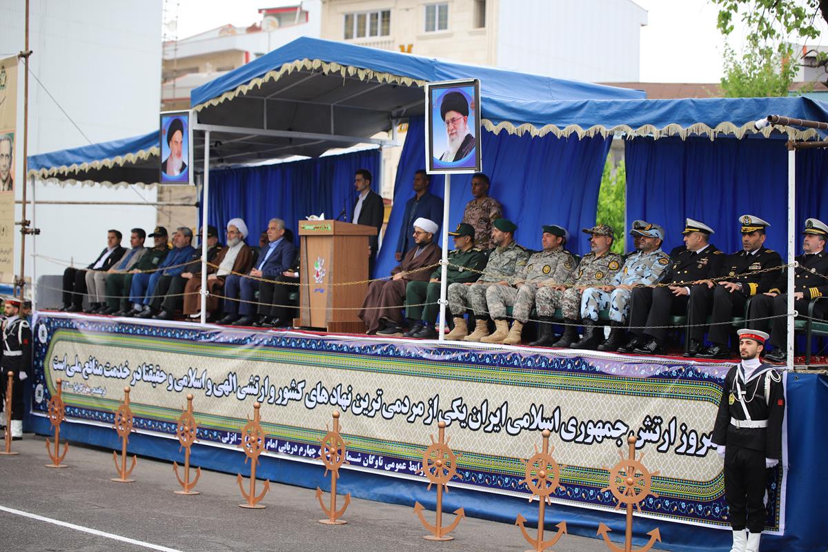 به گزارش پایگاه خبری صفیر گیلان، به مناسبت فرارسیدن ۲۹ فروردین روز ارتش جمهوری اسلامی ایران، مراسم رژه یگانهای نمونه ارتش با سخنرانی آیت الله فلاحتی نماینده ولی فقیه در استان گیلان و امام جمعه رشت، امیر دریادار دوم حمید رضا سعادت فرمانده ناوگان شمال نیروی دریایی ارتش جمهوری اسلامی ایران و با حضور دکتر اسدالله عباسی استاندار گیلان، اعضای شورای تأمین، جمعی از مسئولان استانی و فرماندهان نظامی و انتظامی در رشت برگزار شد.